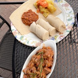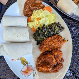This is a really great spot to sample Ethiopian food. And they are also very gluten-free friendly! We split the sampler platter between 2 of us, but it could've easily fed 3 - 4. Food was delicious, service was a little slow but we didn't mind. The patio is great on a nice day!