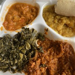 Everyone knows Kansas City is famous for BBQ, but our meal at Blue Nile was far and away the tastiest I had. My husband and I had the vegetarian sampler platter for two. This entree includes servings of 1-8 on the menu and a generous amount of injera. We carried the food out around 2:30 and then reheated everything around 4:30 and it was delicious. The sampler platter is plentiful and we were both stuffed. Service was fast and friendly, and the price was fair for the huge amount of food that we received.